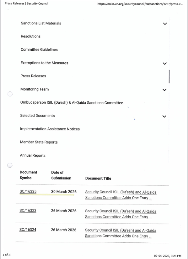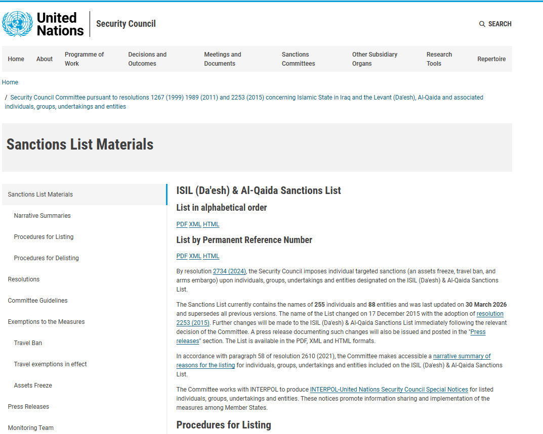 UNSCR Sanction List: main.un.org/securitycouncil/en/sanctions/1267/press-releases